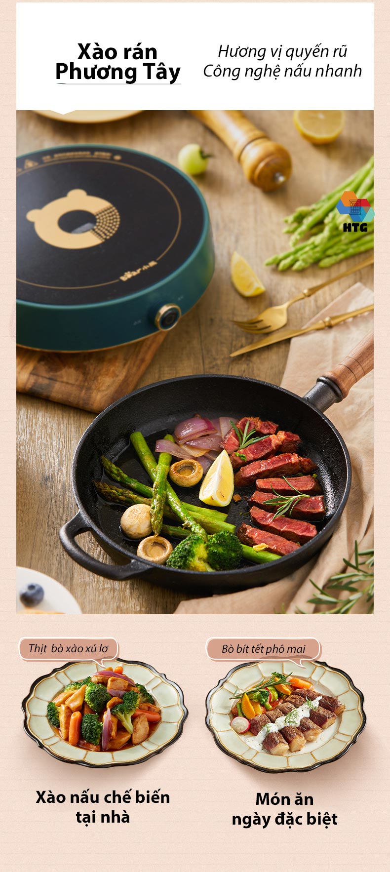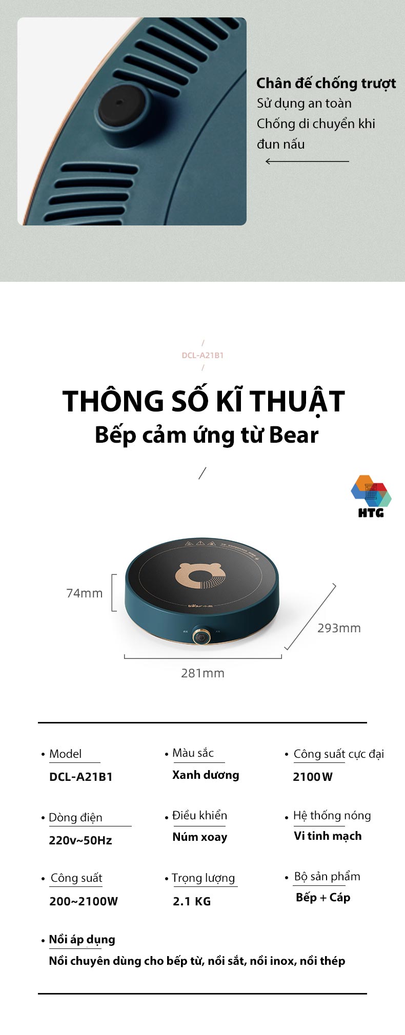 - Nồi phù hợp : Nồi chuyên bếp từ, nồi inox, nồi sắt, nồi thép.