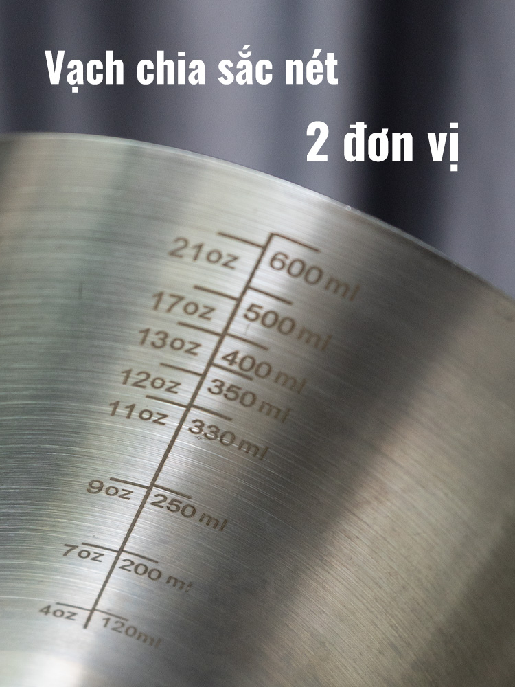 Dung tích lớn với 600ml có vạch chia laser sắc nét rõ ràng