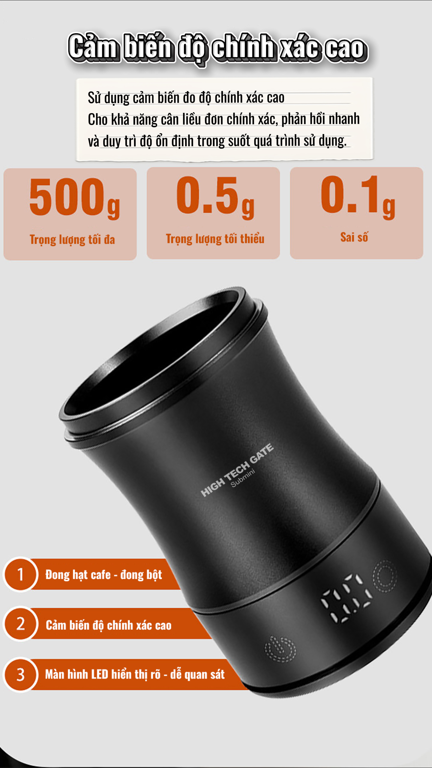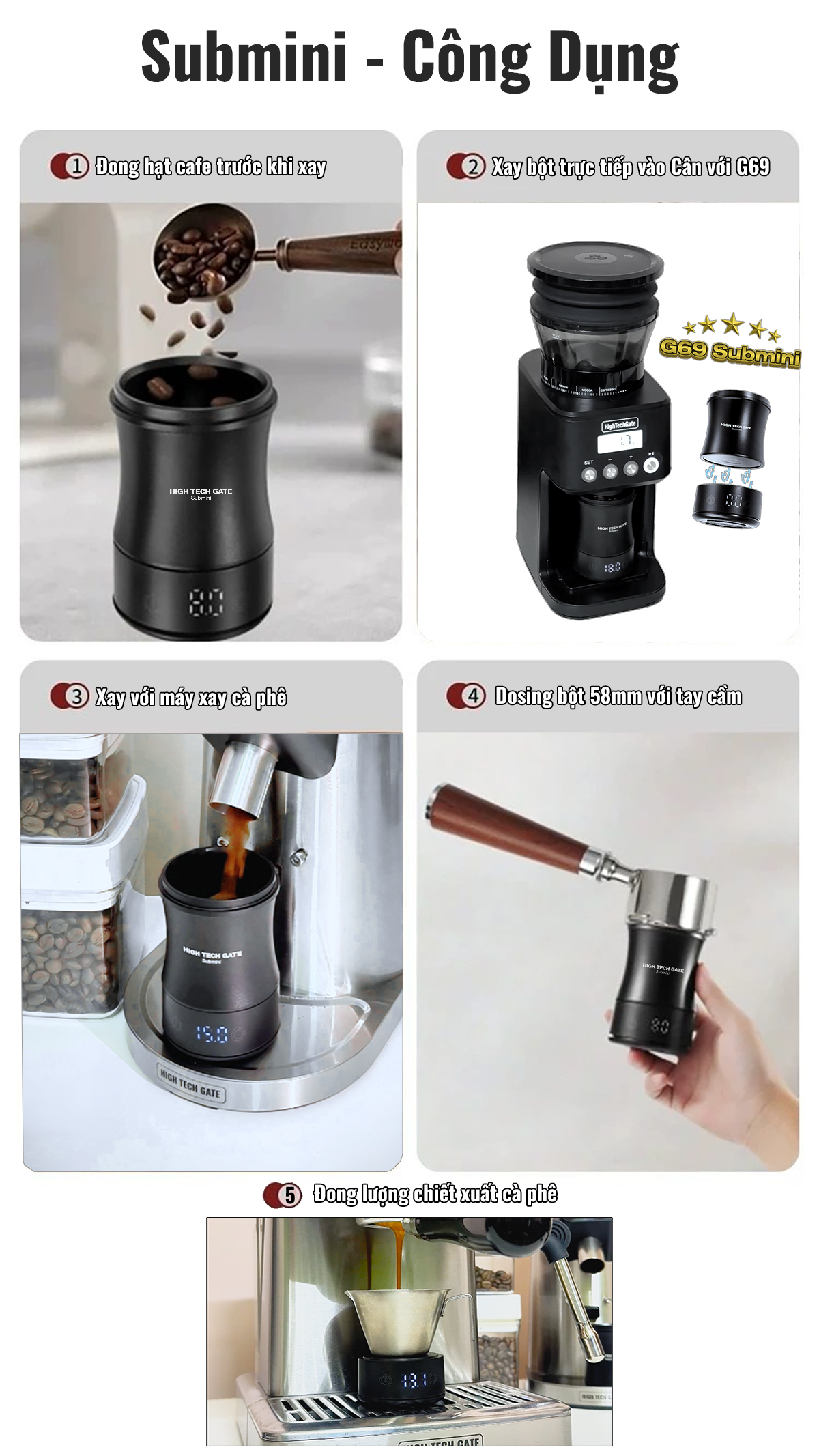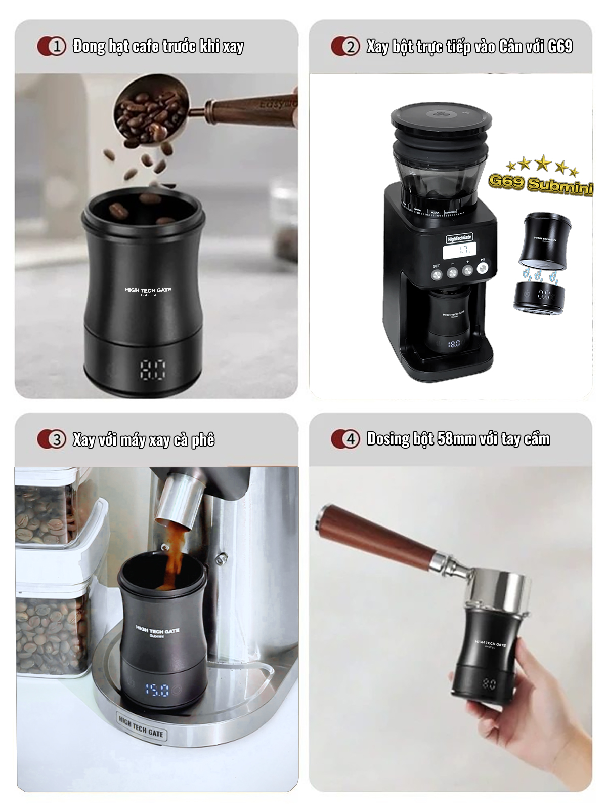 Cân đong bột cà phê Submini 58mm – Dosing Cup tích hợp cân điện tử