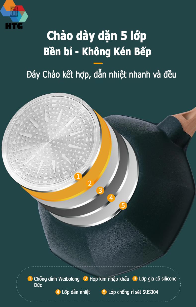 Lòng chảo sâu lên đến 10cm, với công nghệ tráng chống dính Germany - Đức, giúp sử dụng chảo khi chế biến có thể lật úp thoải mái mà không sợ bị văng thực phẩm ra bên ngoài.