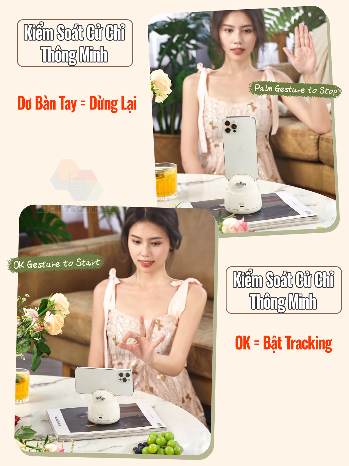 Giá đỡ điện thoại xoay 360 tự động dõi theo chuyển động 2 trục, công nghệ AI mới - GO