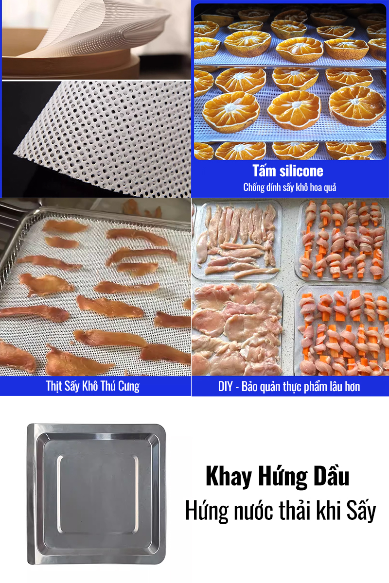 - Kích thước mỗi khay sấy : 25cmx25cm
