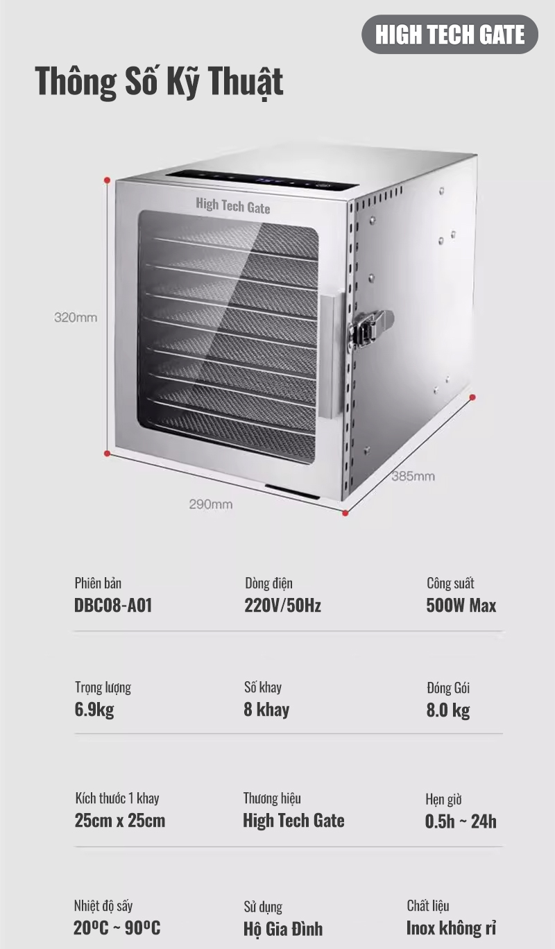 Máy Sấy Thực Phẩm Inox HTG 8 khay DBC08-A01
