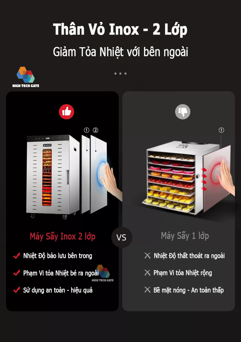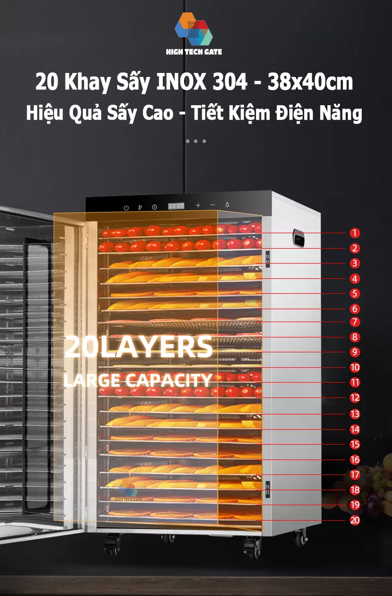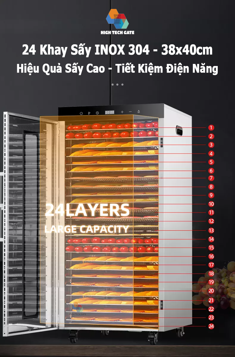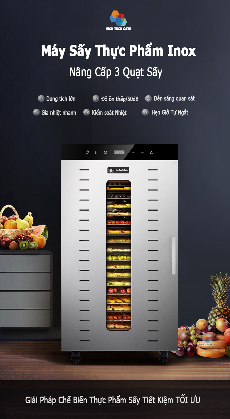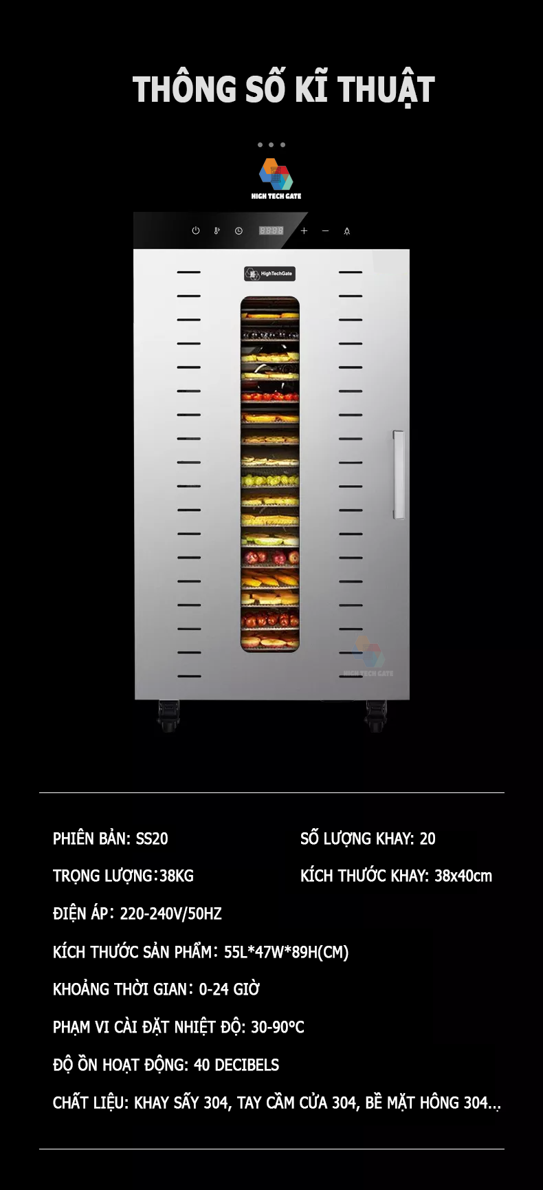 Cảm ơn quý khách đã quan tâm đến sản phẩm Máy Sấy Thực Phẩm HTG 20/24 Khay, Hẹn Giờ Đến 24 Tiếng, Nhiệt Độ 30-90ºC, Chất Liệu Inox 2 Lớp Bền Bỉ, Model SS20/24