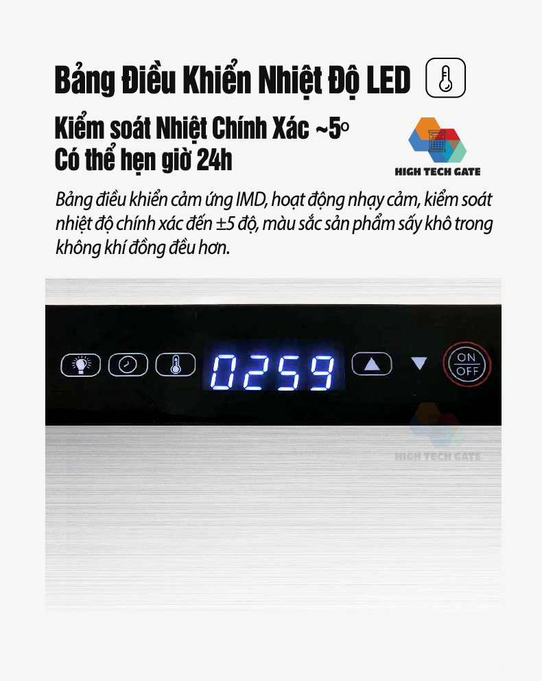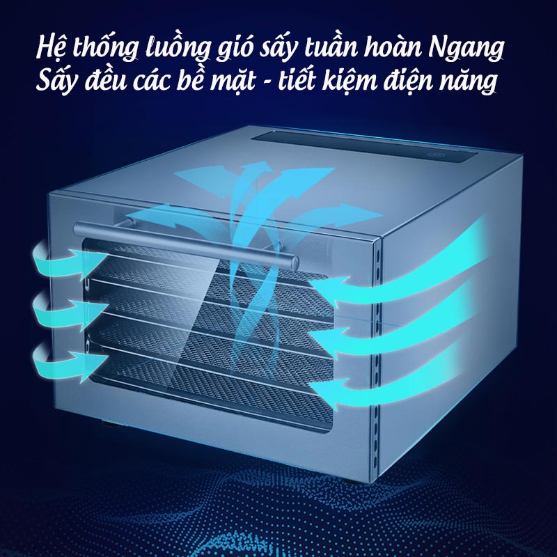 - Khung nhiệt độ từ 20-90 độ C, đa dạng chế biến các món sấy khô khác nhau, từ hoa quả đến trái cây, thịt cá...