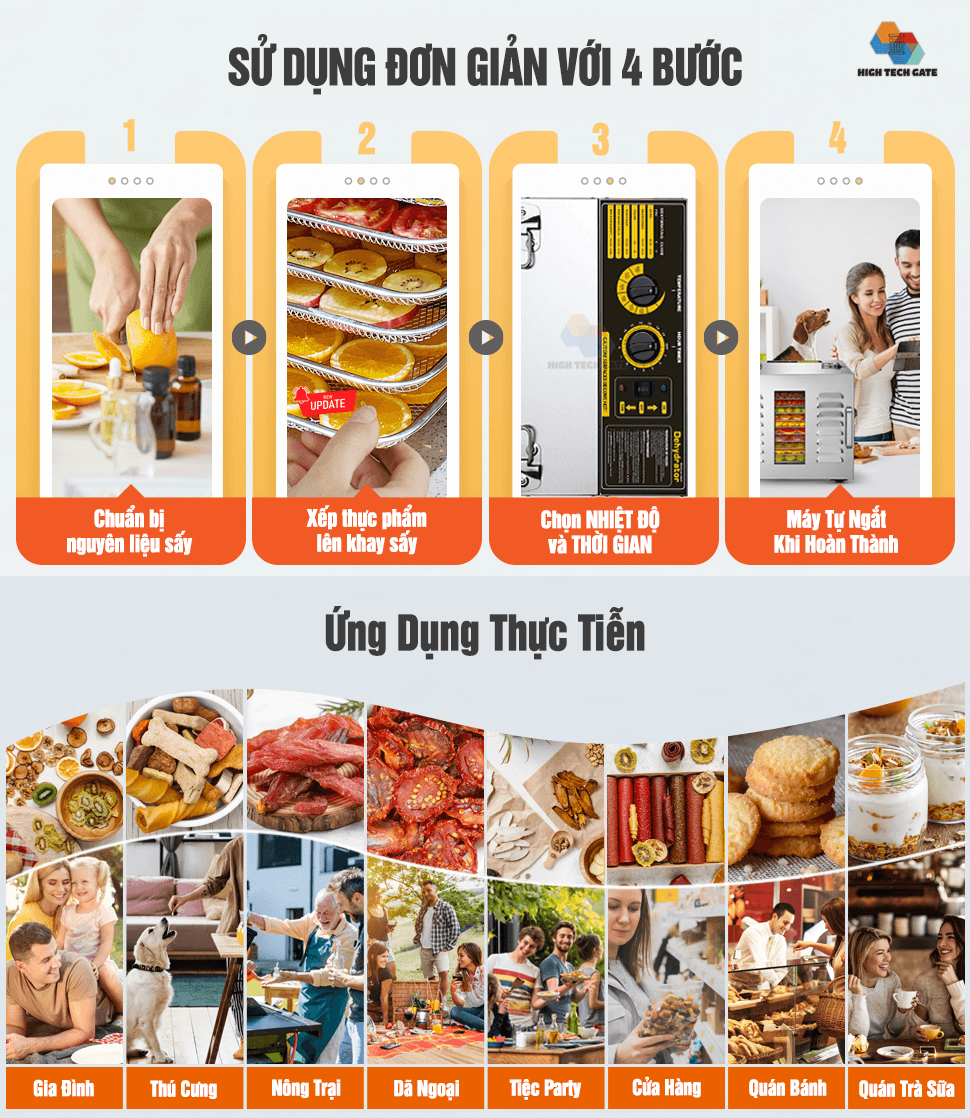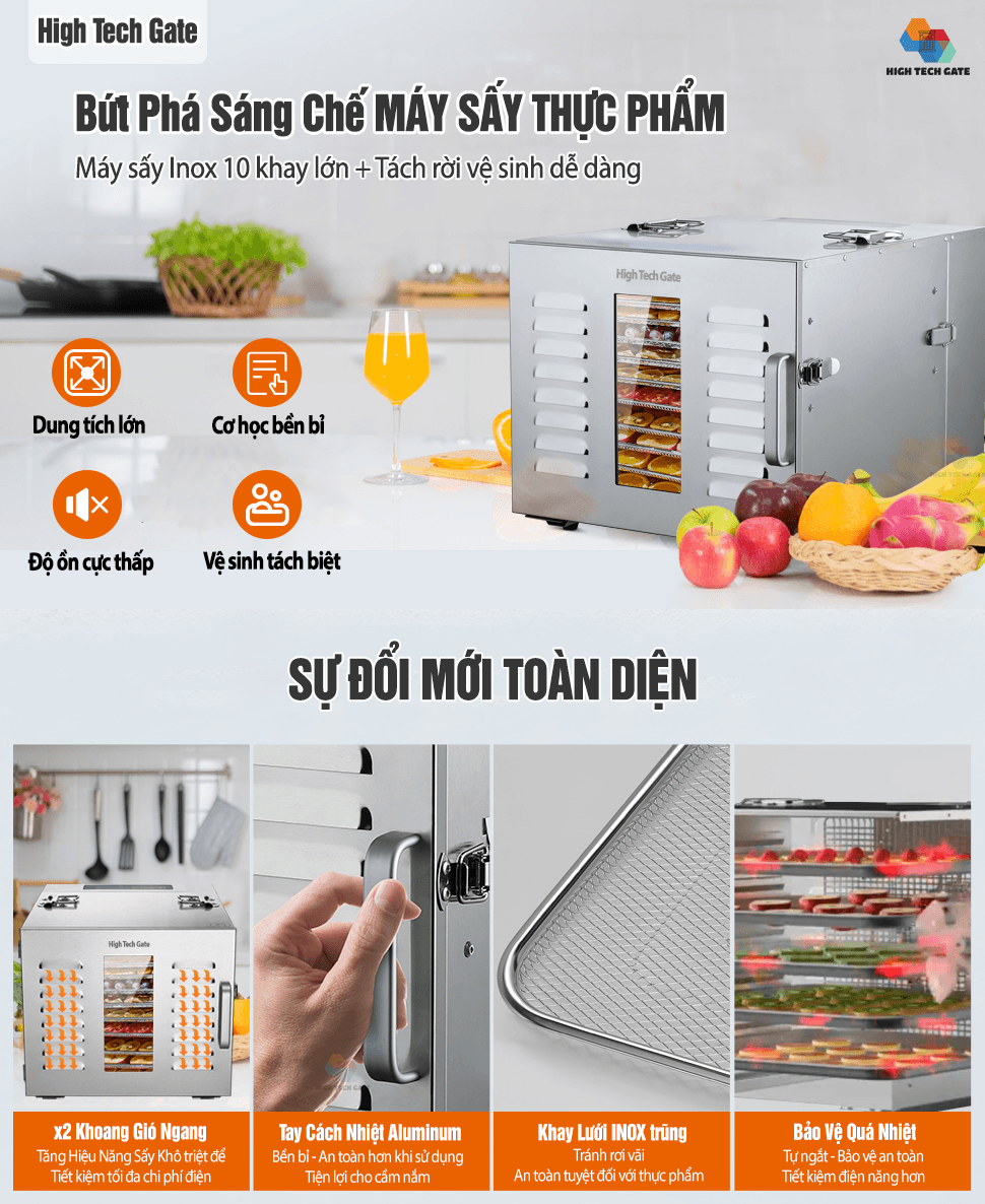 - Kích thước khay sấy: 40cmx40cm (vuông)