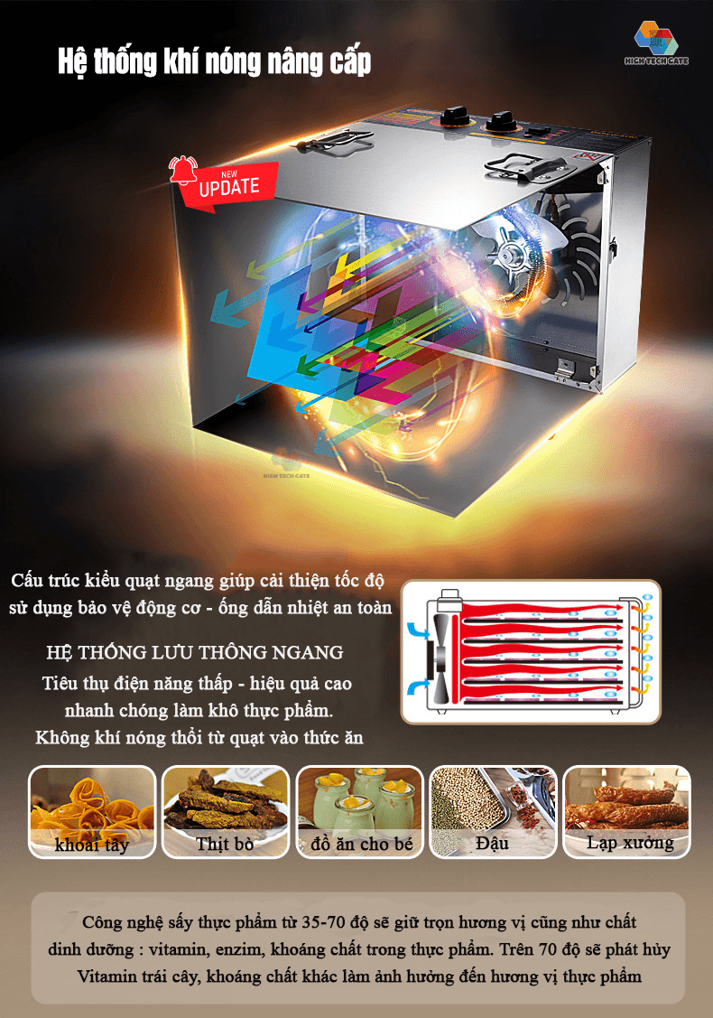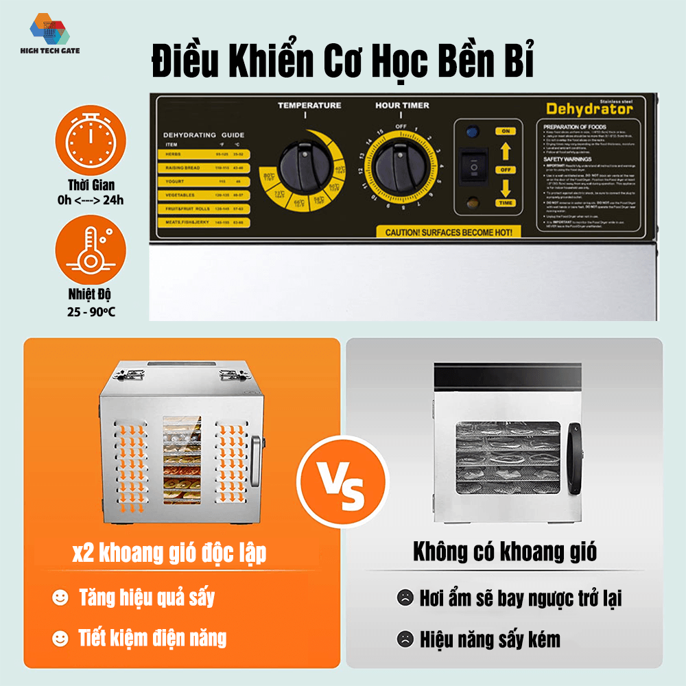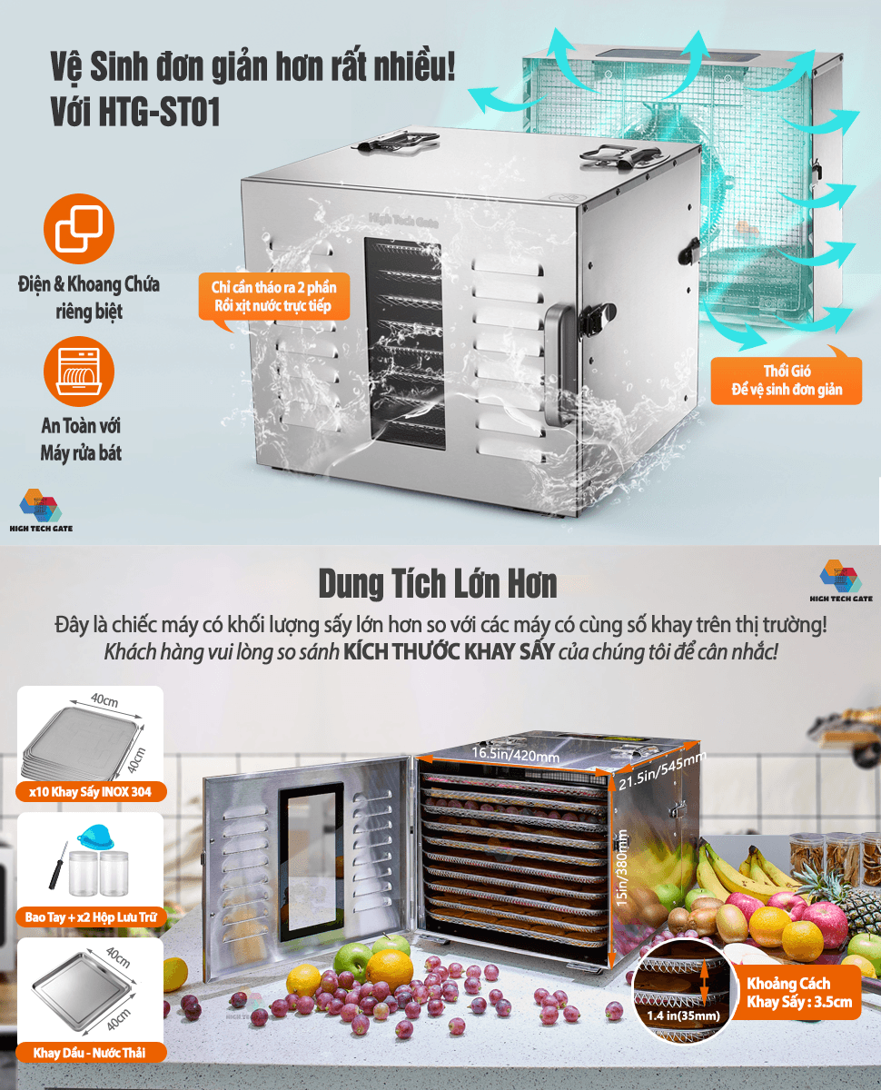 - Khoảng cách khay sấy: 3.5cm