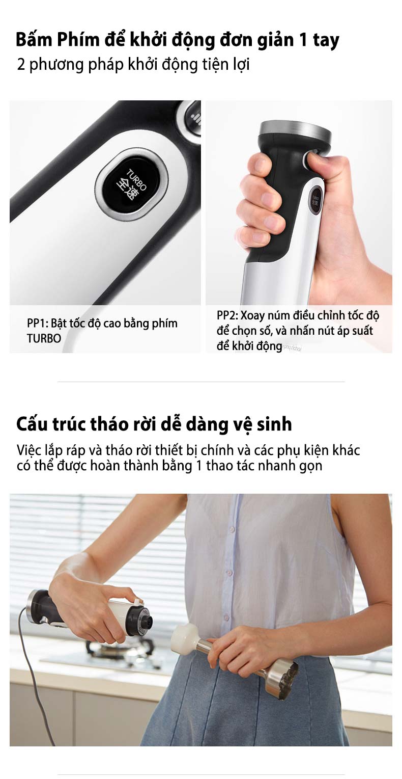 Máy xay cầm tay Morphy Richards MR6006 thiết kế nhỏ gọn, tiện dụng giúp chị em nội trợ nấu nướng, chế biến được đa dạng các món ăn khác nhau hơn với 4 chức năng trong 1 chiếc máy.