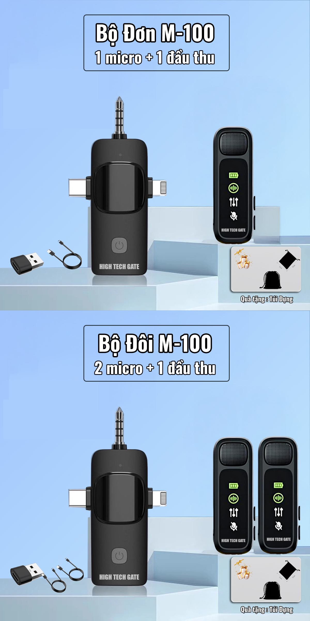 Bộ 1 mic : 1 đầu thu, 1 mic, 1 dây sạc, 1 đầu chuyển USB, 1 túi lữu trữ tặng kèm