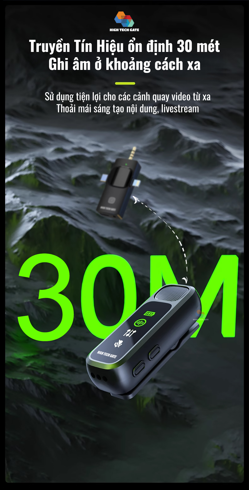 Phiên bản mic thu âm không dây cài áo M100 được hỗ trợ sử dụng lên đến 30m khoảng cách, giúp bạn ghi hình các đoạn vlog từ xa hay livestream từ xa với thiết bị quay 1 cách dễ dàng, từ đó có thể lấy được các khung hình rộng, các chi tiết 1 cách cụ thể hơn khi ghi hình.