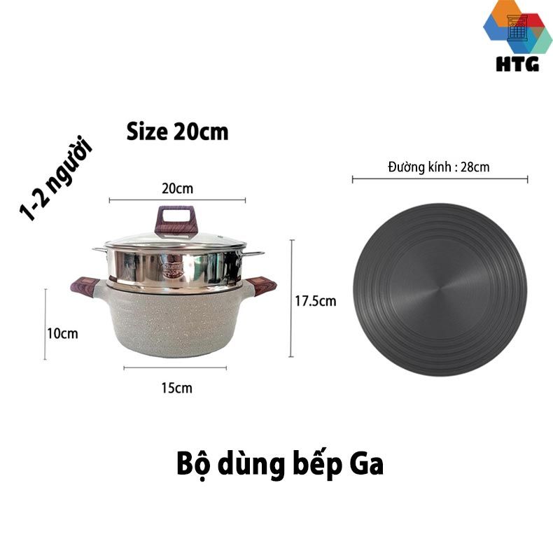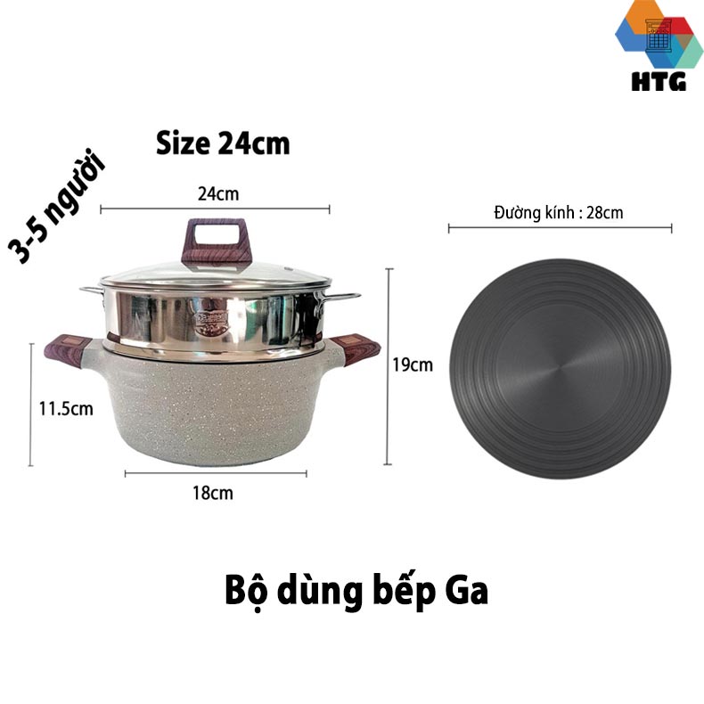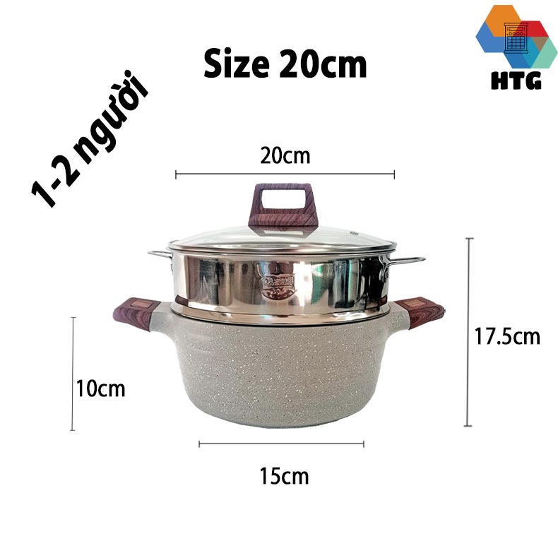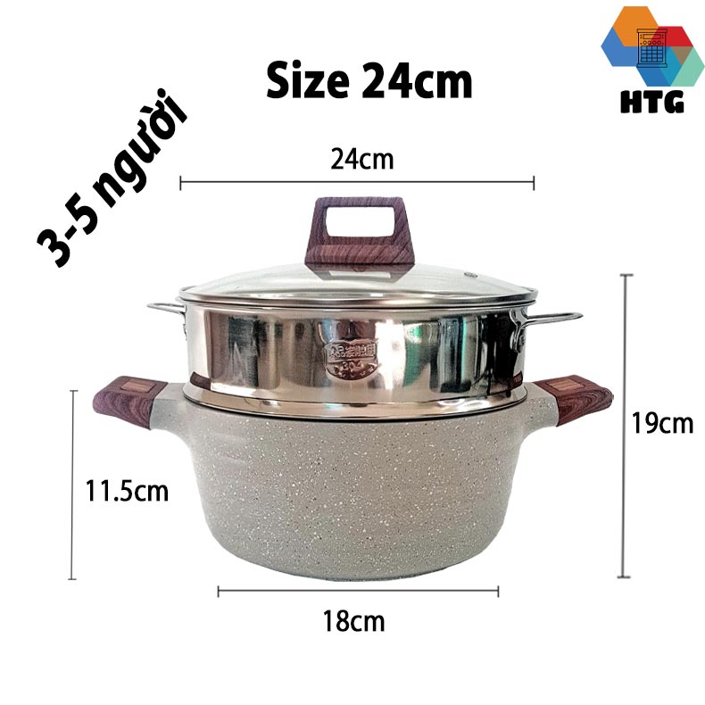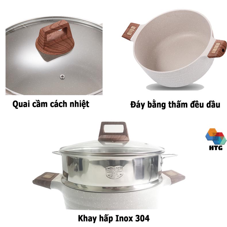 Nồi đá Maifan Phaedra hàng cao cấp, chống dính siêu bền, có xửng hấp, sử dụng mọi loại bếp, gia nhiệt nhanh