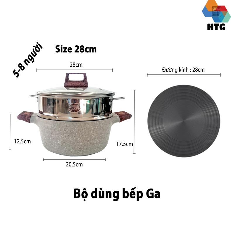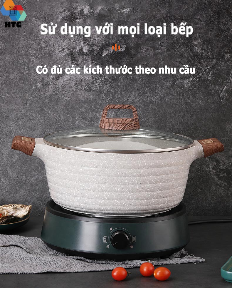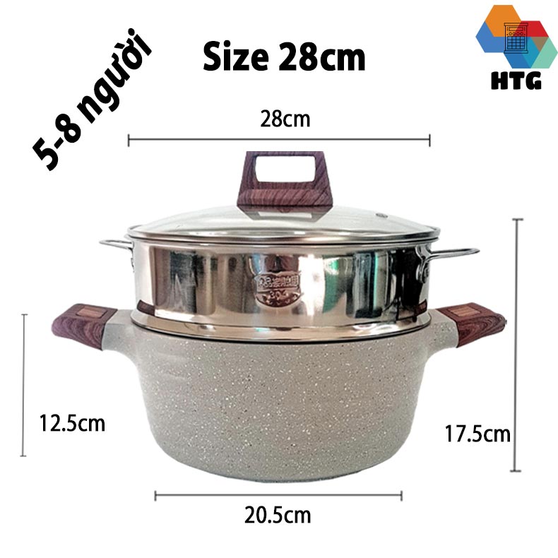 - Đủ các kích thước từ 20 cm đến 28cm (đường kính nồi) để phù hợp với các gia đình ít người hay đông người.
