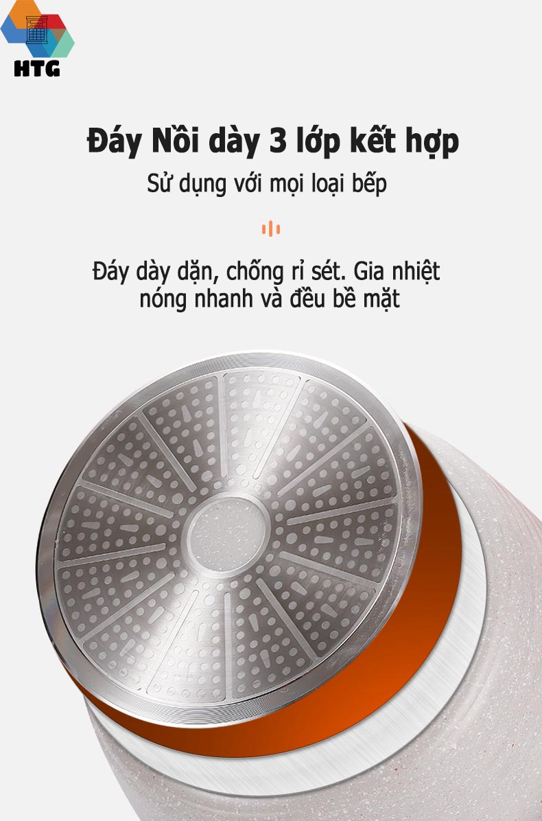 - Đáy dày 3 lớp, kết hợp các lớp lại tạo 1 tổng thể dày dặn, cứng cáp và dẫn nhiệt nhanh