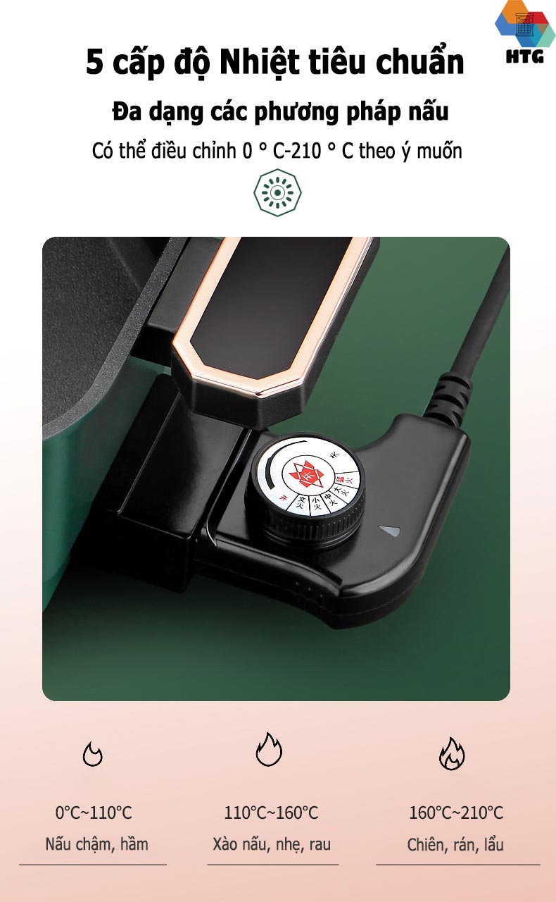 Thiết bị trang bị cho mình núm xoay có thể kiểm soát nhiệt với 5 mức đạt tiêu chuẩn 3C, đa năng lựa chọn các mức nhiệt độ khác nhau, bạn hoàn toàn có thể chế biến các món ăn mình thích với phương pháp nấu nướng phù hợp.
