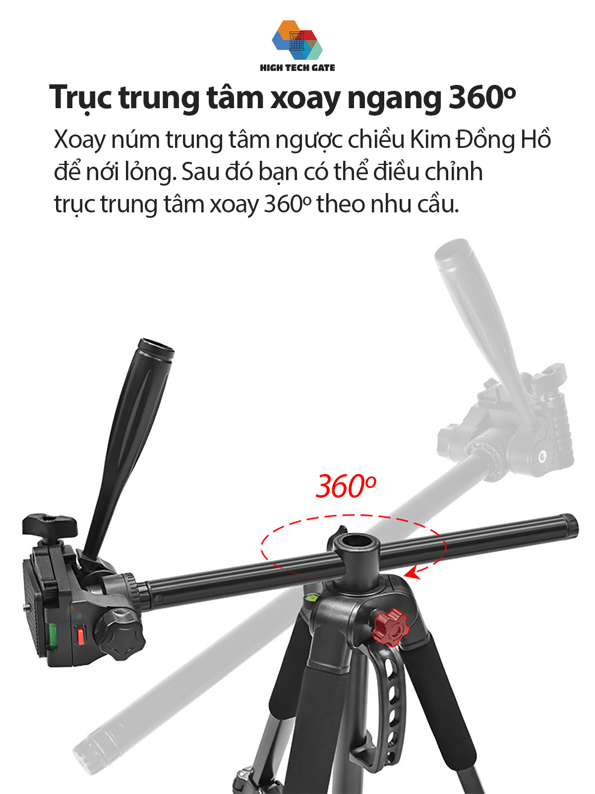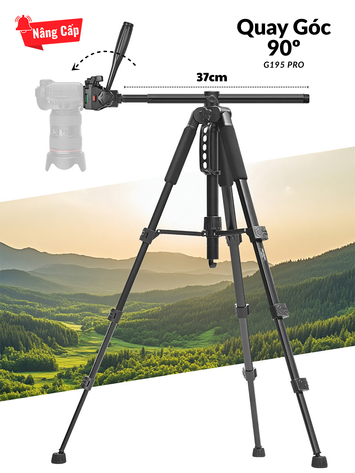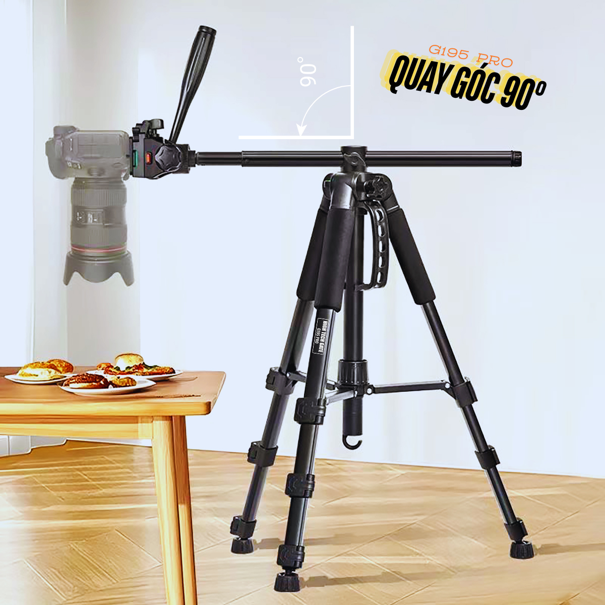 Tripod G195 PRO cao cấp xoay 360°, hỗ trợ quay từ trên xuống góc 90° chuyên nghiệp.