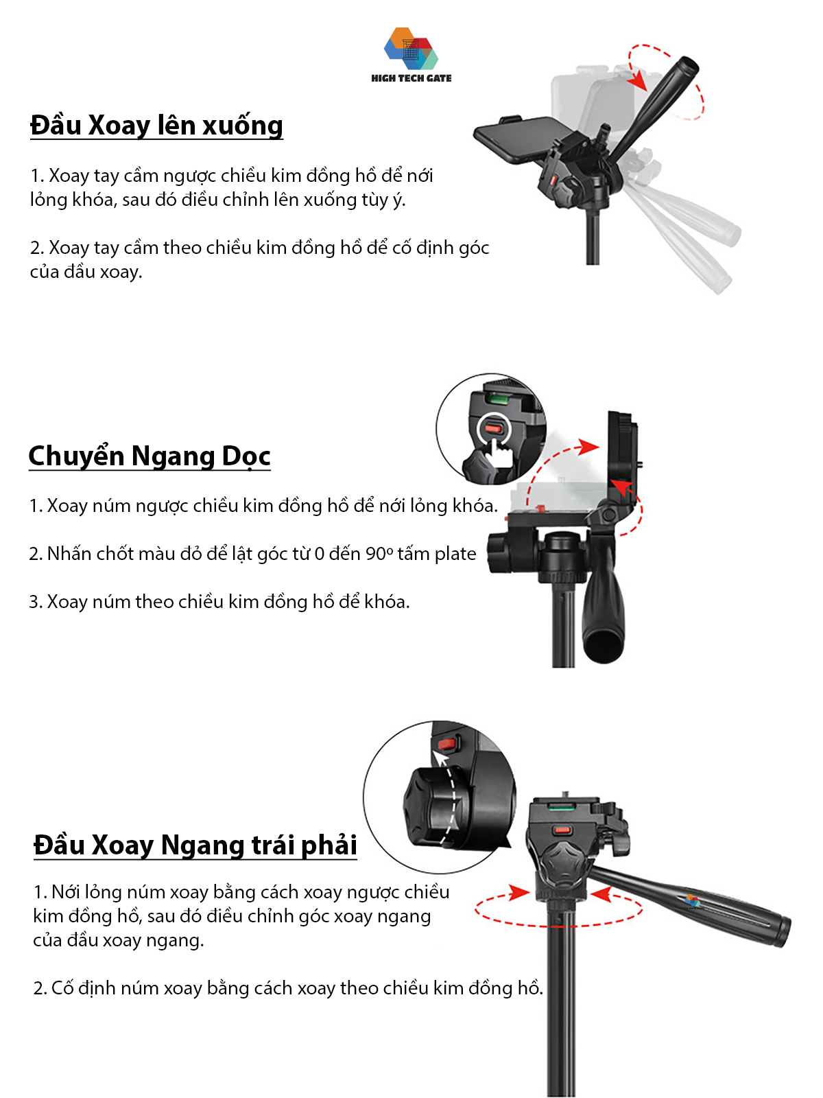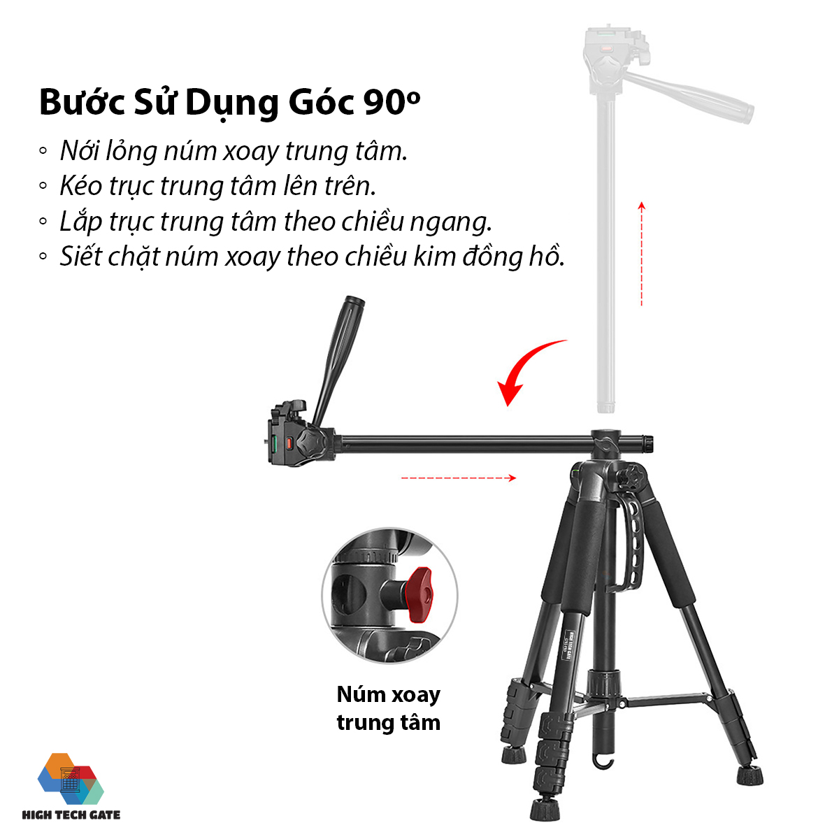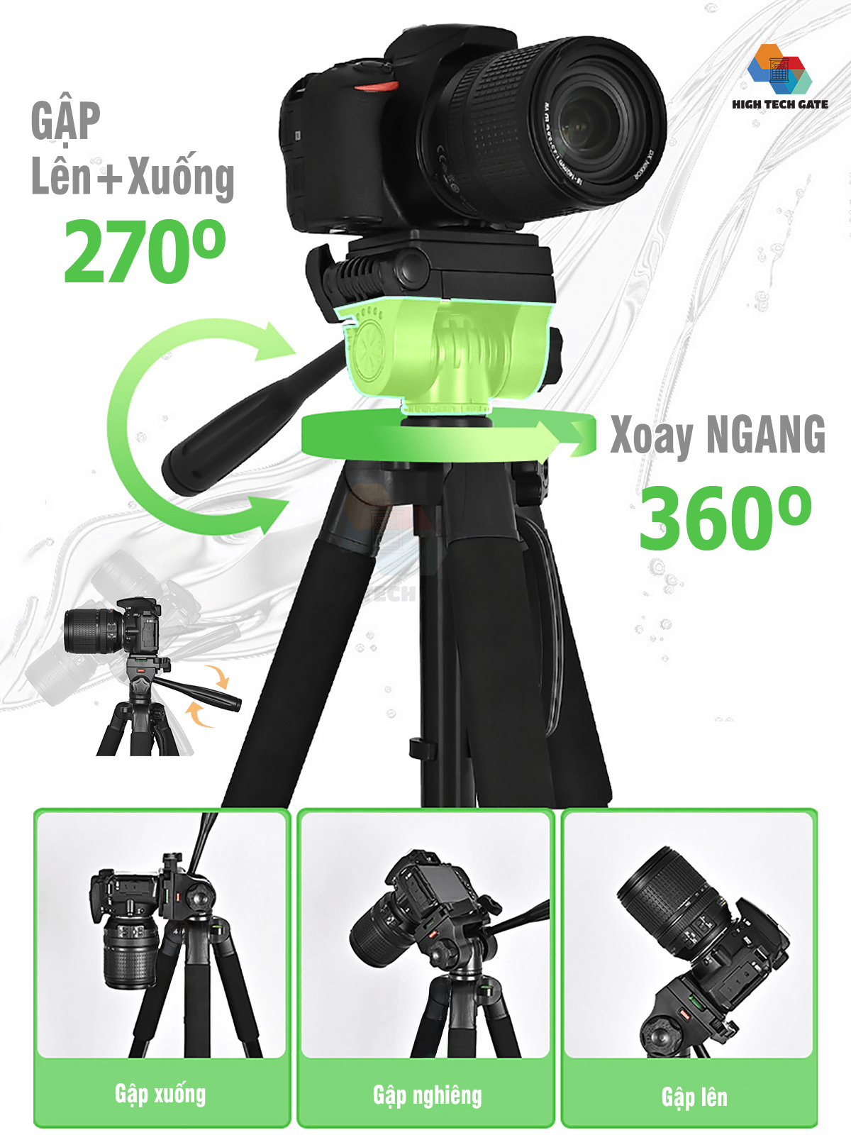 Tripod G195 PRO cao cấp xoay 360°, hỗ trợ quay từ trên xuống góc 90° chuyên nghiệp.