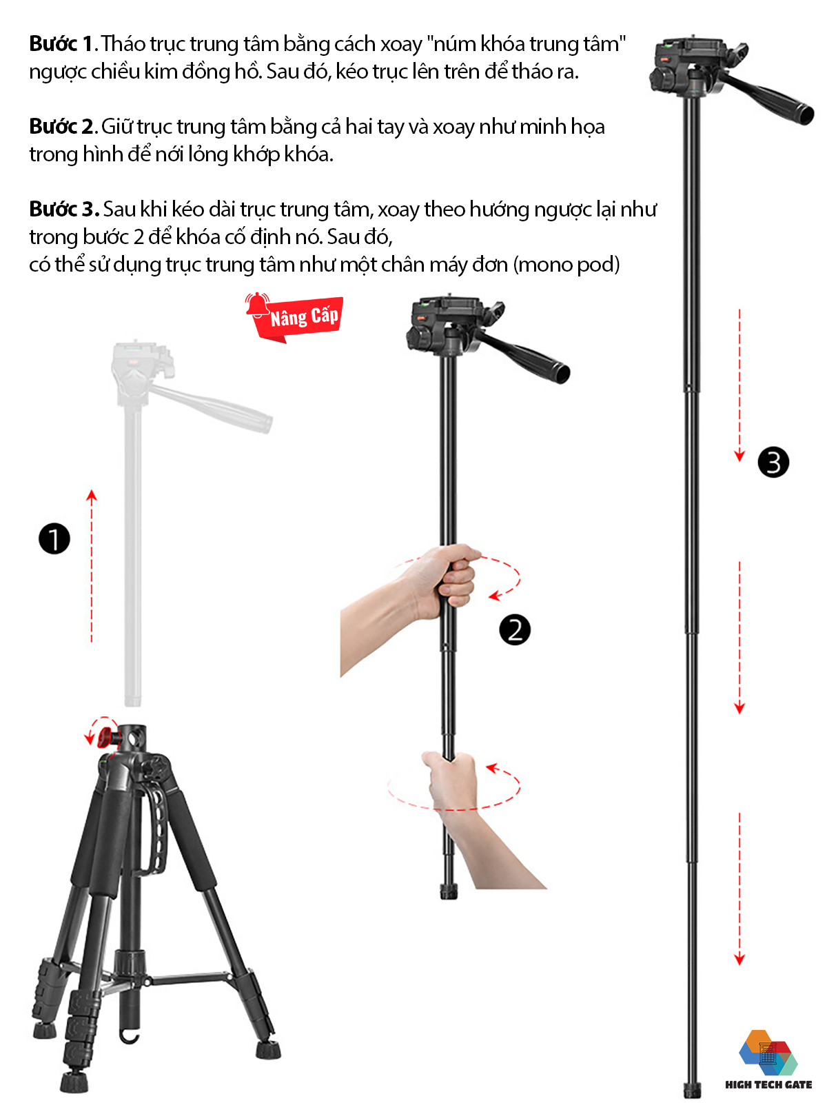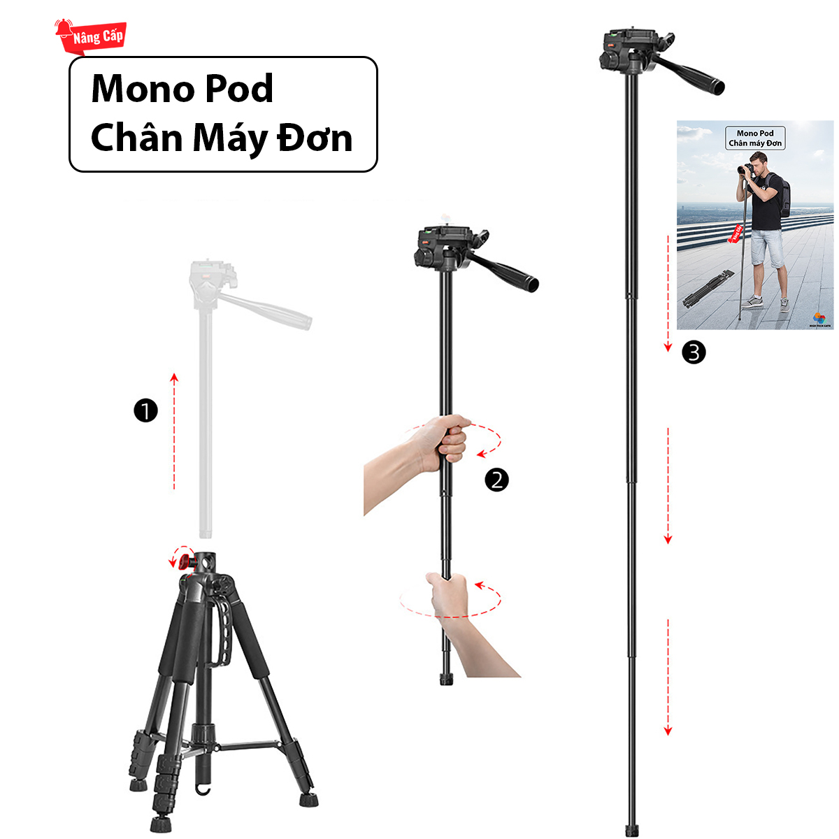 🎒 Trục giữa tháo rời thành Mono-pod 132,5 cm, cơ động quay vlog/sự kiện.
