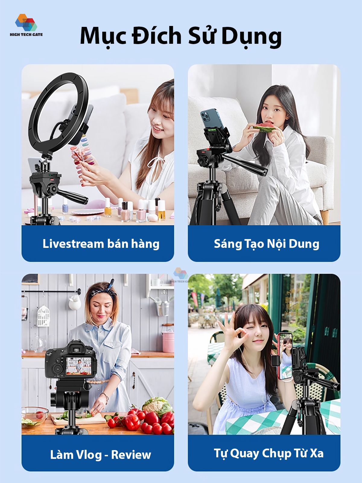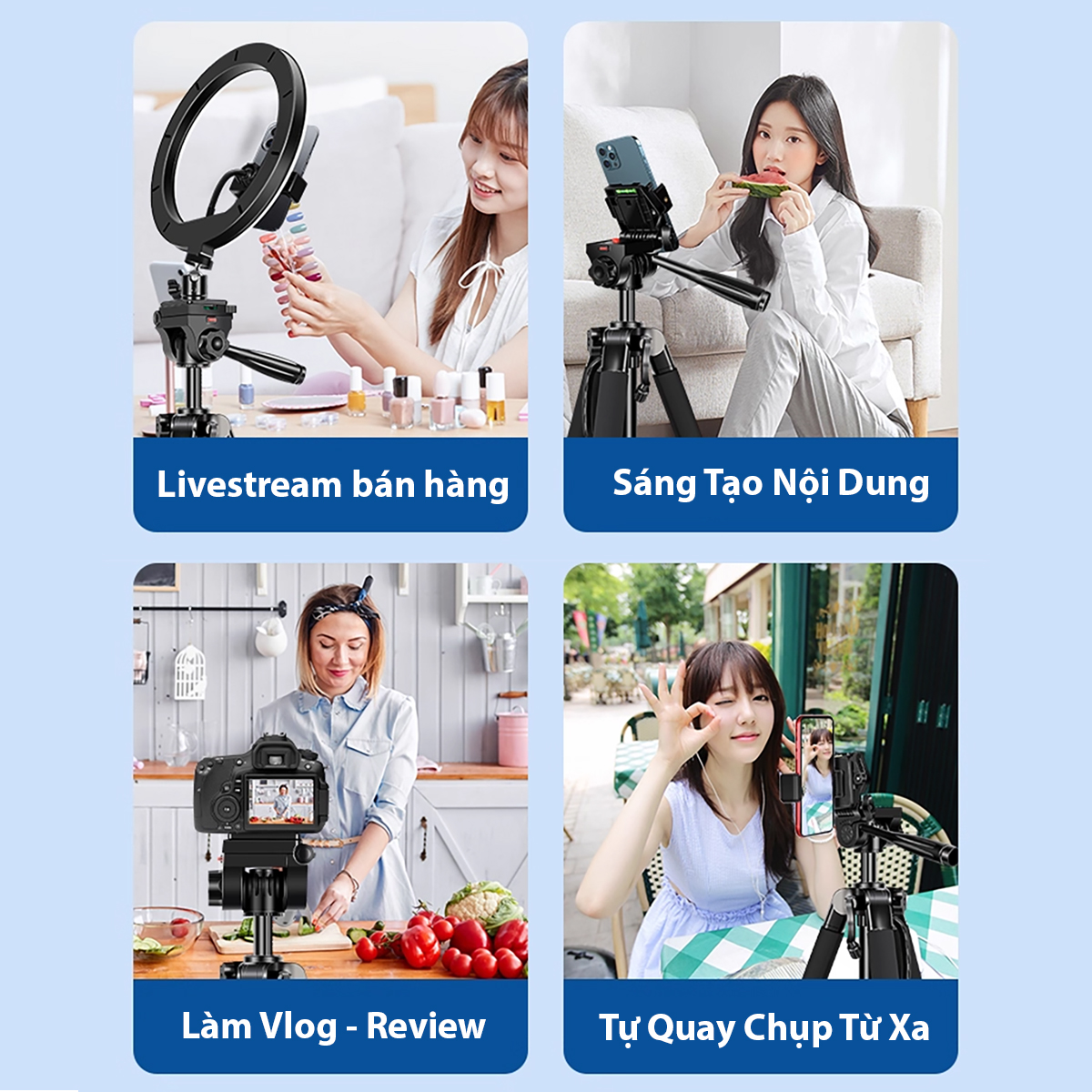 Tripod G195 PRO được thiết kế dành cho mọi nhu cầu quay chụp hiện đại: từ livestream, quay video review, chụp sản phẩm, food, vlog du lịch, đến quay unbox hoặc phỏng vấn. Với khả năng xoay 360° và quay từ trên xuống góc 90°, tripod giúp tạo ra góc quay chuyên nghiệp, ổn định và đẹp mắt như studio.